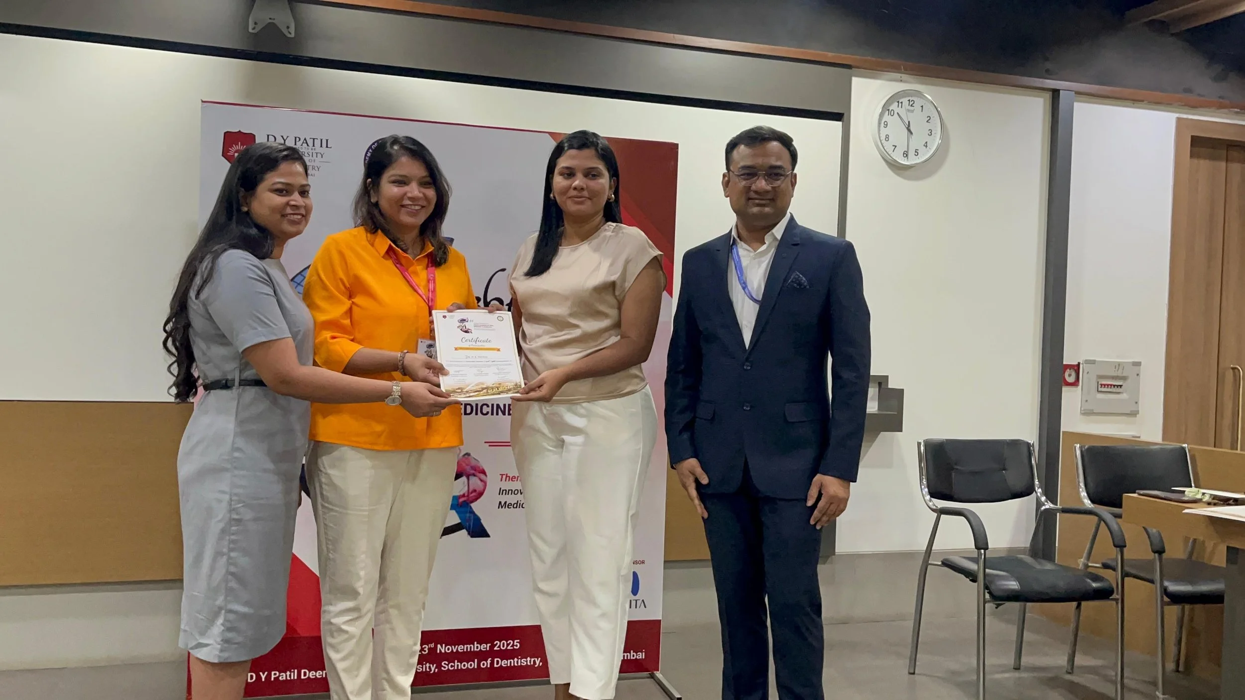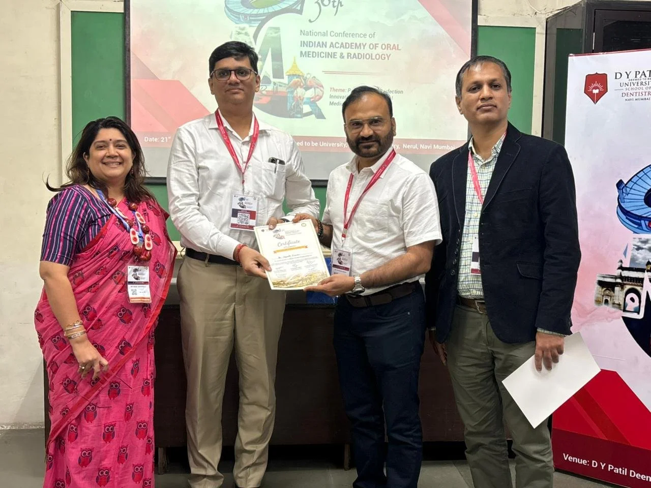 Dr.V.Jayanth Kumar honoured for delivering a guest lecture at 36th National conference of IAOMR at D Y Patil School of Dentistry