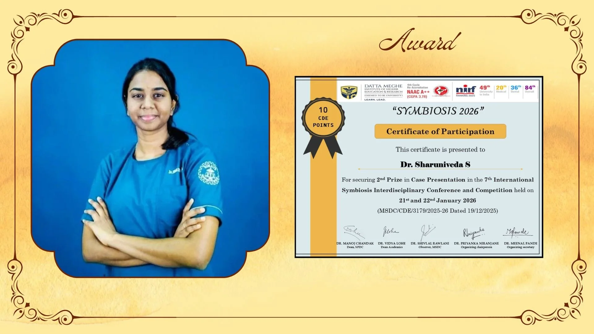 Dr.Sharuniveda receiving THE BEST PAPER award