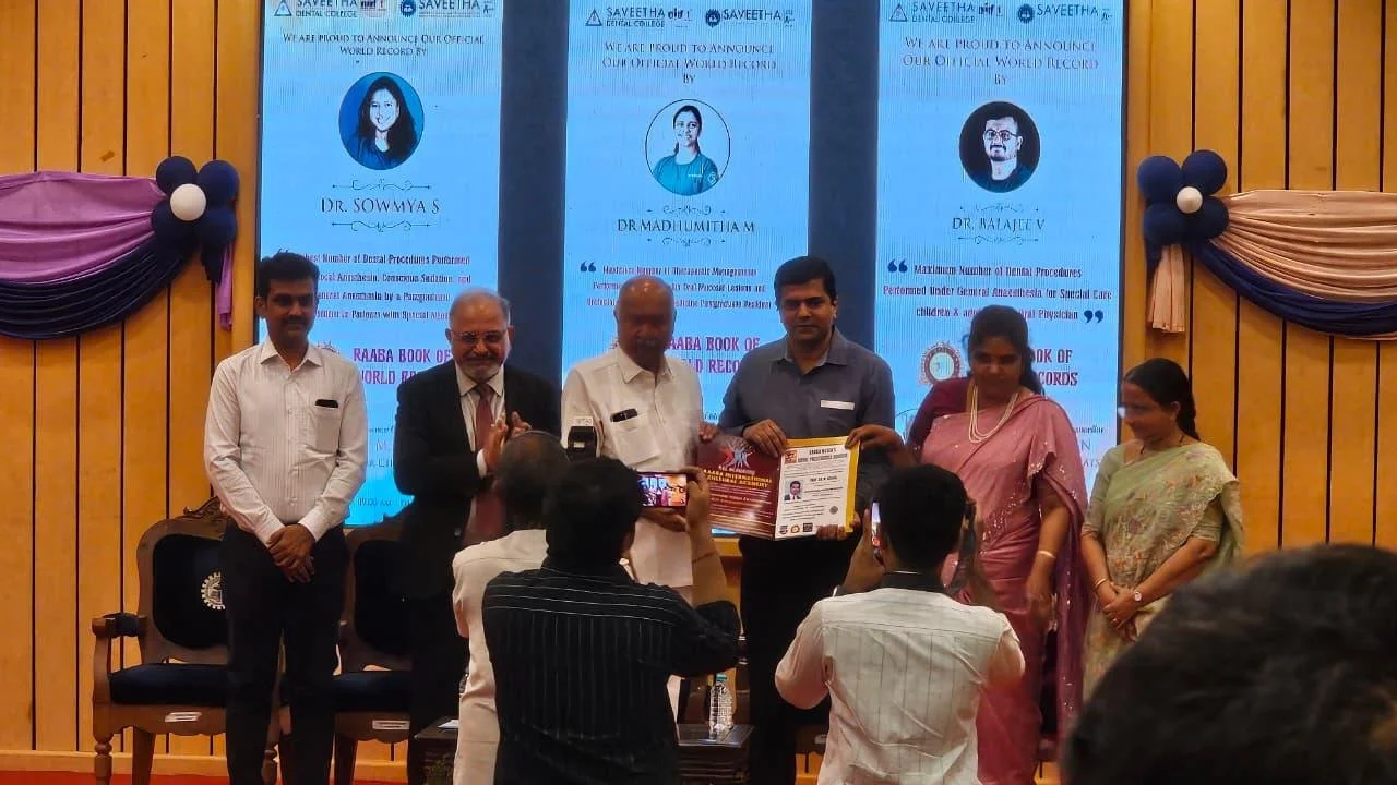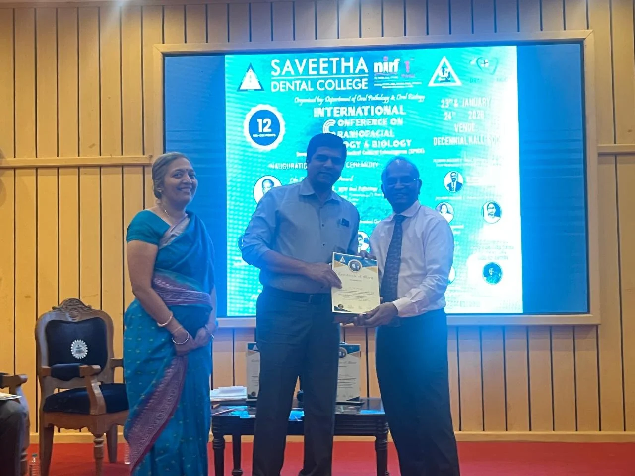 Dr.Surenthar honoured for delivering guest lecture at Madha Dental College & Hospitals